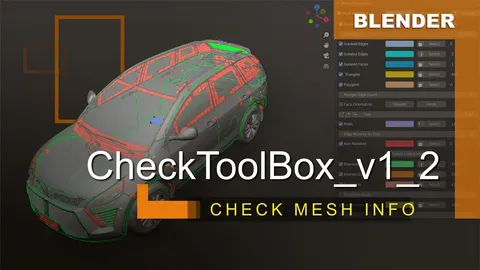 CheckToolBox provides real-time mesh topology inspection and error highlighting in Edit Mode. The tool visually identifies specific geometric properties such as poles, triangles, N-gons, doubles, and non-manifold geometry by applying shading color overlays directly onto the 3D model. It includes features to count isolated points, edges, faces, intersections, distortions, and degenerate polygons, as well as displaying face orientation.