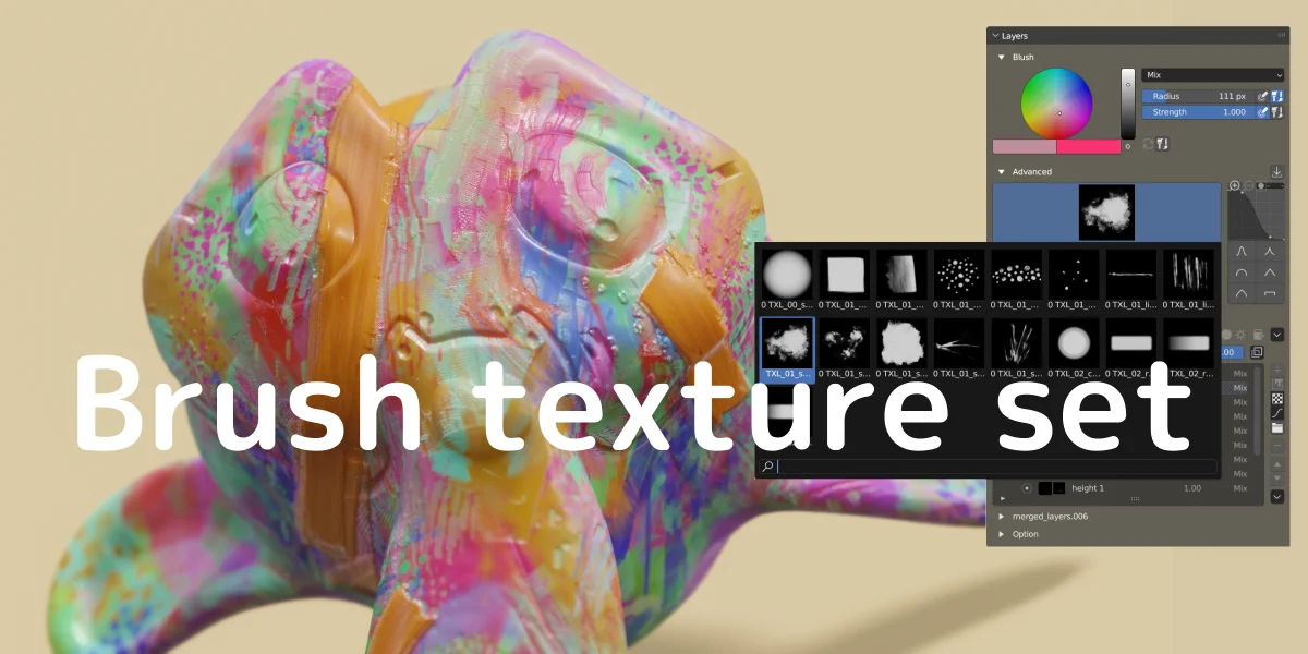 A collection of image-based brush textures designed for use with the Tx Layer add-on in Blender. These alpha images are primarily intended for texture painting workflows, though some textures are also suitable for sculpting or generating bump maps. The pack provides the raw image data only and does not include pre-configured brush settings.