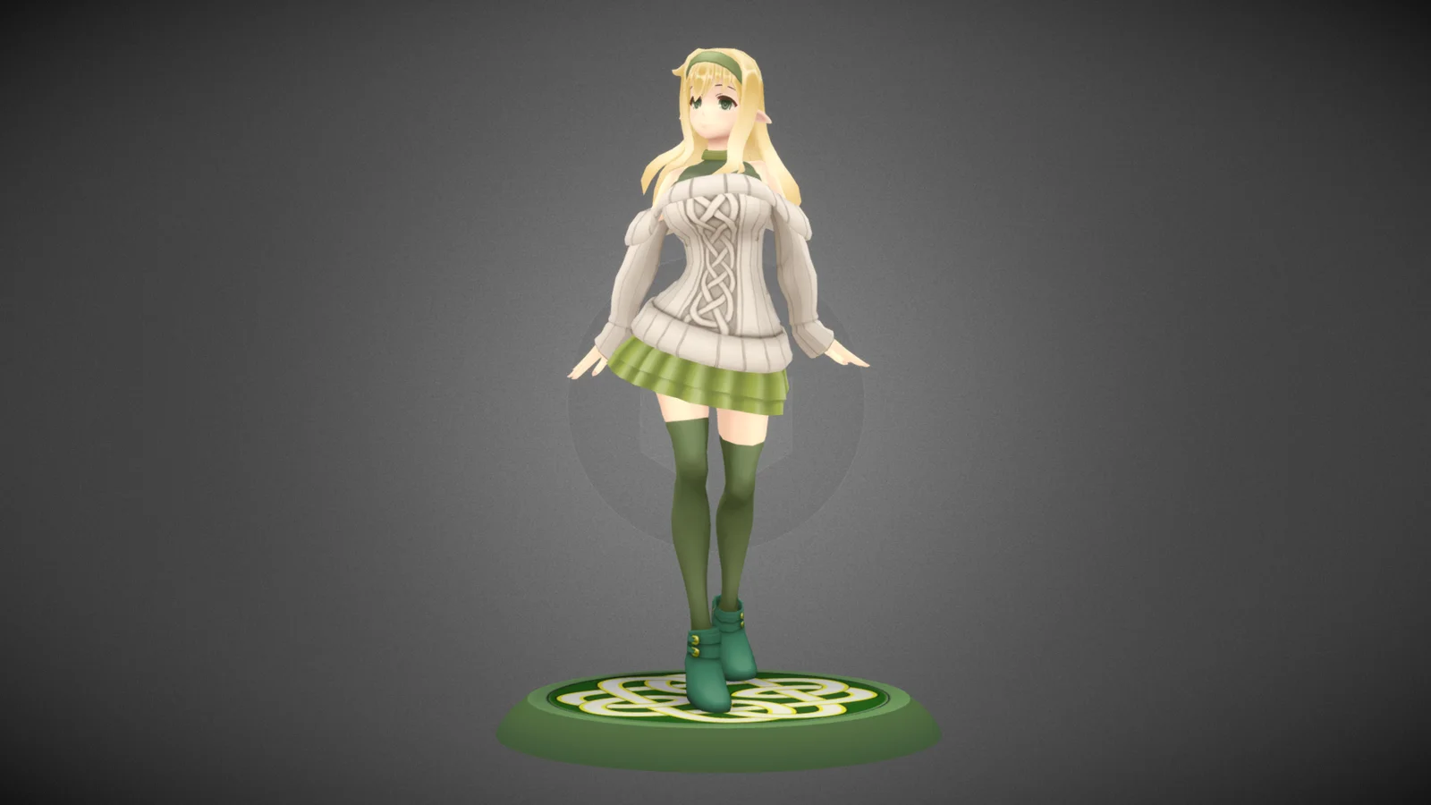 A low-poly 3D character model of an anime-style elf girl. The asset is lightweight, consisting of 7,500 triangles and 7,600 vertices. It is provided in multiple standard 3D formats, including FBX, USDZ, GLB, and GLTF, making it ready for import into Blender.