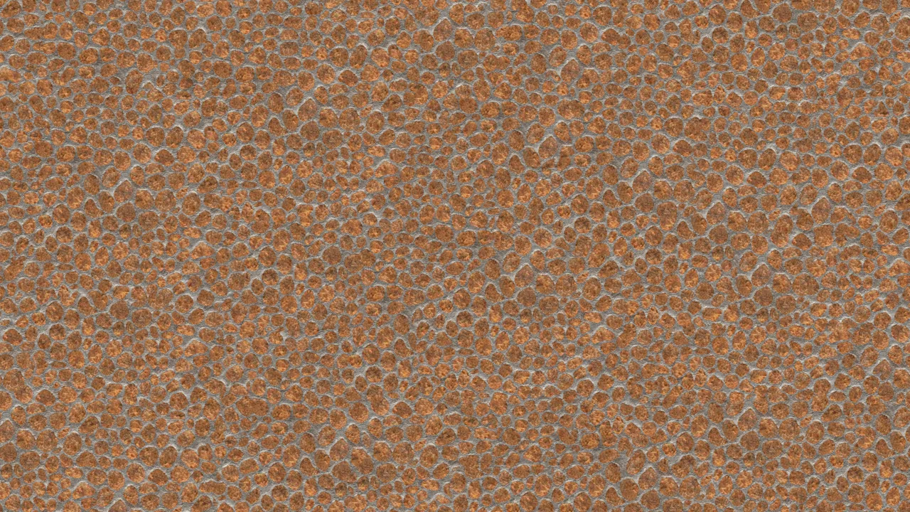 This seamless texture pack provides PBR materials representing dinosaur skin. The textures are supplied at 1k, 2k, and 4k resolution options. Included maps are ambient occlusion, diffuse, displacement, normal, and specular.