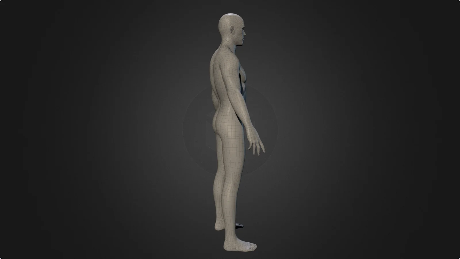 This product provides a foundational male character base mesh designed to serve as a starting point for sculpting, retopology, and general character modeling workflows. The geometry consists of 14,200 triangles and an equal number of vertices.