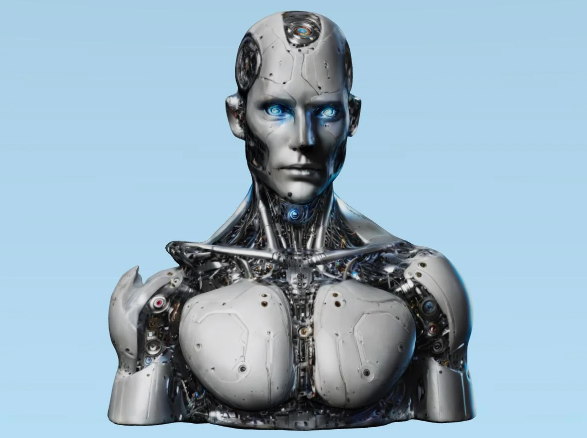 A 3D model of a sci-fi android bust. The asset is provided in the GLB file format and contains a geometry resolution of 50,000 faces and 27,900 vertices.