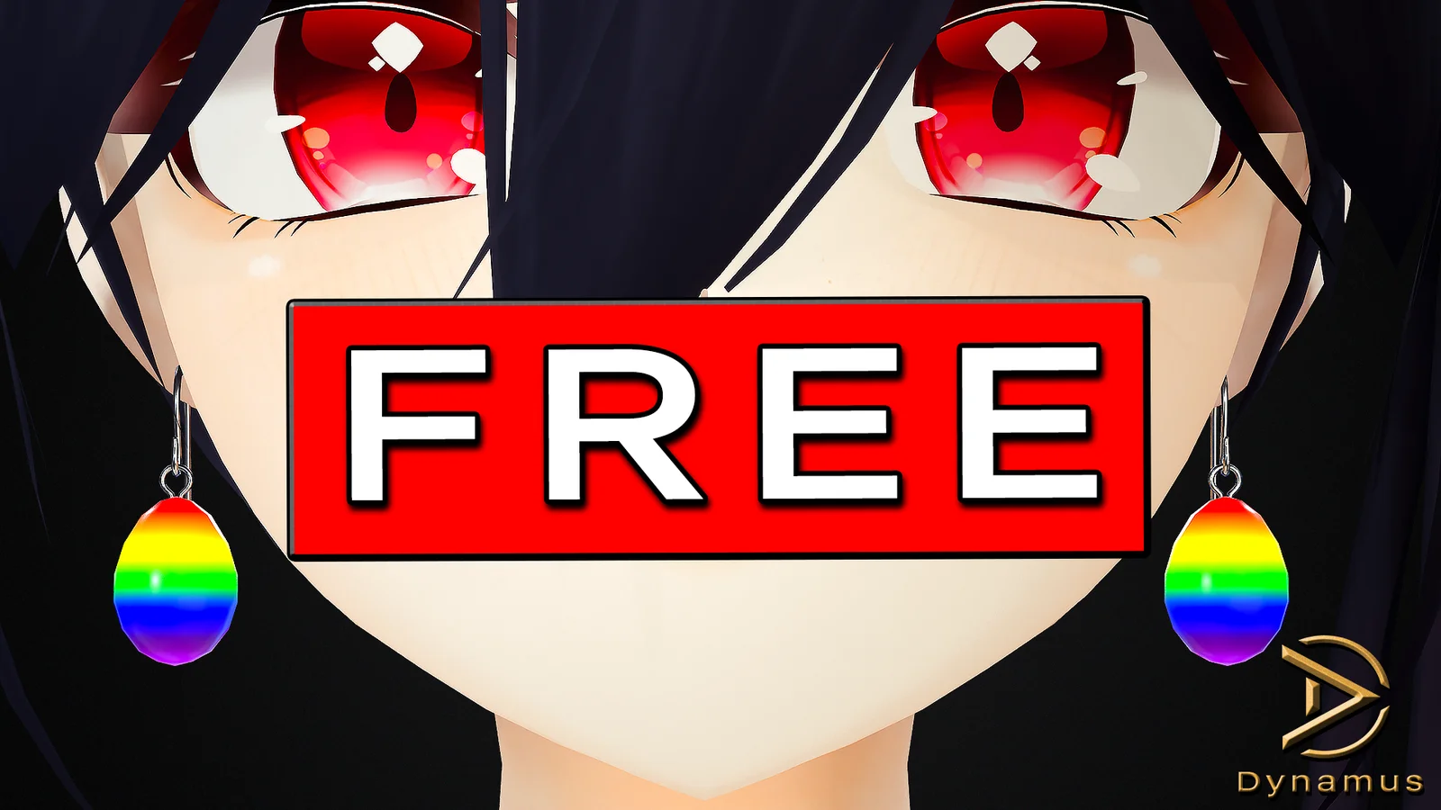 A low-poly 3D model of rainbow egg earrings, containing 850 triangles. The asset includes 1K, 2K, and 4K resolution textures with albedo, roughness, metallic, ambient occlusion, and emissive maps. It is provided with a single material setup and includes Blender, FBX, and OBJ file formats.