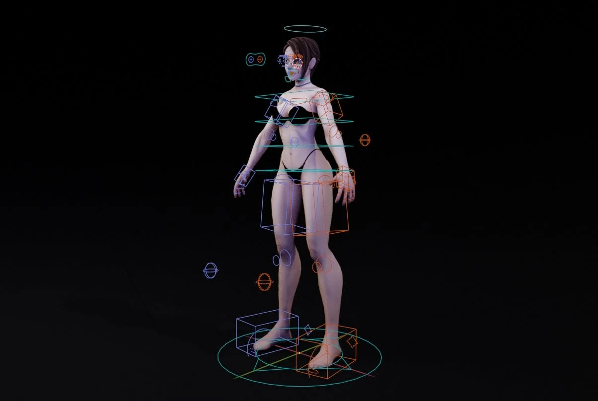 This is a rigged female body base model intended for use as a starting point for RPG character creation. The character is fully rigged using Auto-Rig Pro, providing complete skeletal controls including IK/FK switching for the arms and legs. It also includes a facial rig for animation. Users will need to manually add teeth to the model to complete the head setup.