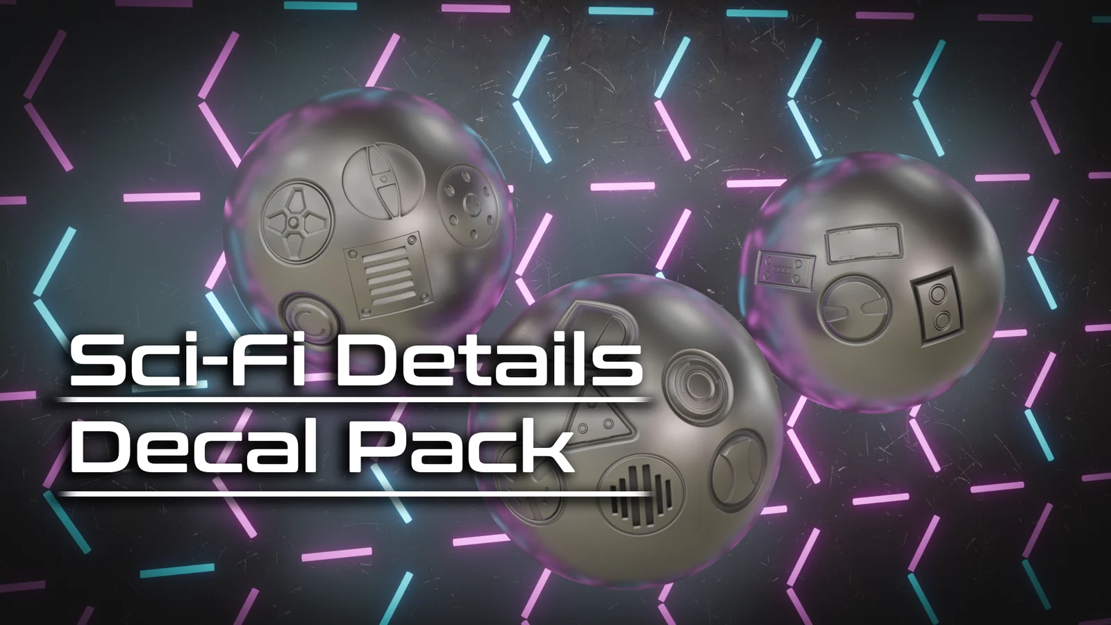 This collection includes 15 sci-fi decals ready for use in Blender. The assets are formatted specifically for compatibility with the Decal Machine add-on, allowing for quick drag-and-drop workflow. Each decal consists of a single object and material, baked at a 1024 pixel resolution with 4x anti-aliasing.