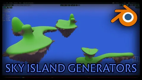 This Geometry Nodes setup generates procedural floating sky islands within Blender. The project utilizes custom instance shrinkwrapping node techniques to construct the floating landmasses, providing a base for creating stylized platformer-style environments.