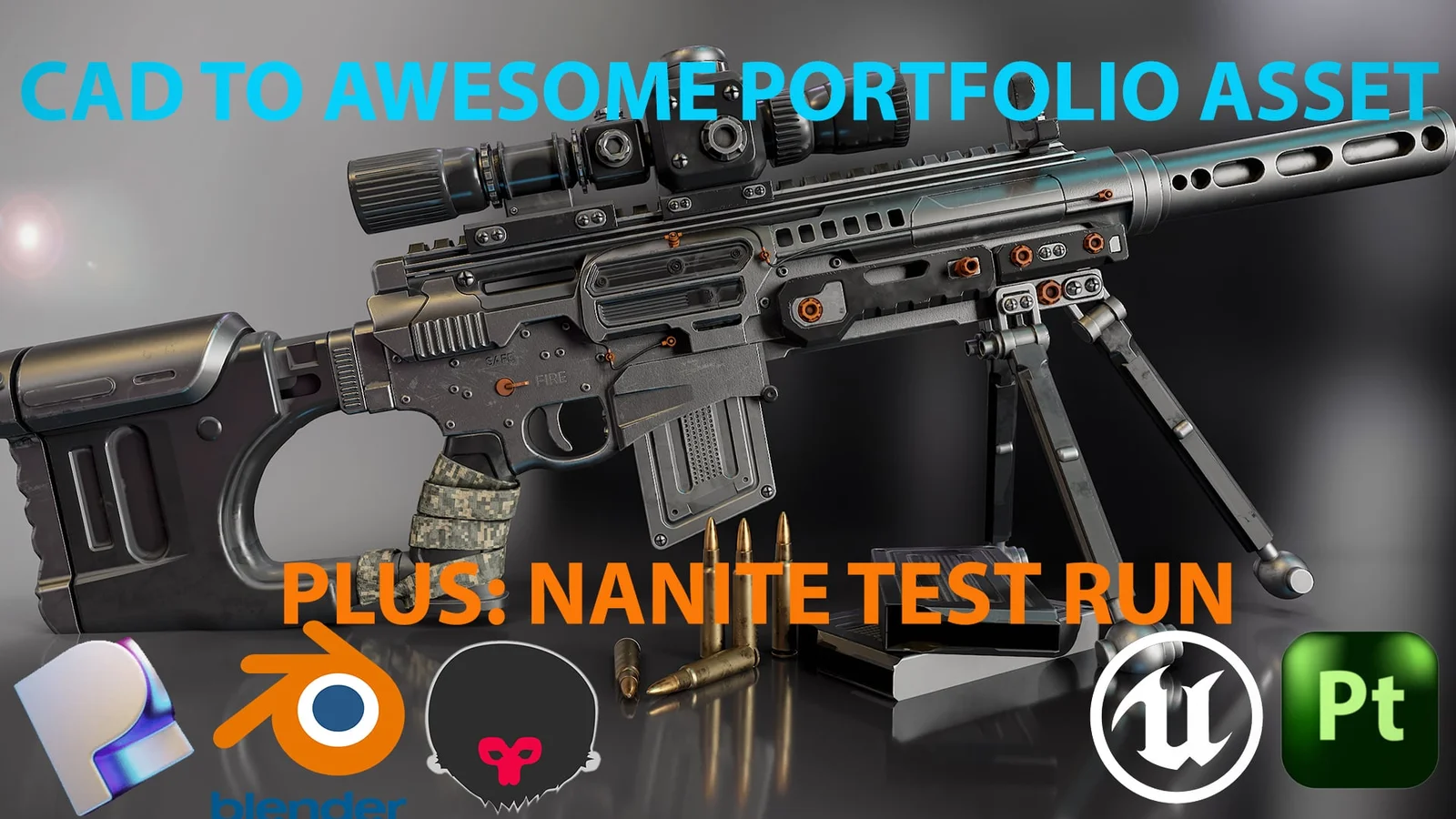 A 16-hour video training course demonstrating the process of converting CAD data into a polished 3D portfolio asset. The workflow covers initial modeling in Plasticity, followed by intermediate steps for retopology, optimization, and UV unwrapping within Blender.
