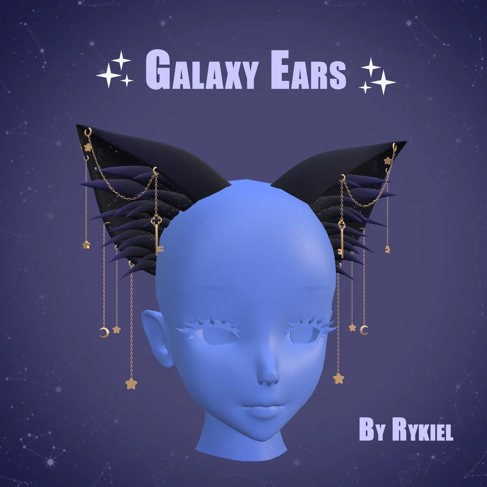A 3D model of galaxy-themed cat ears. The asset comes fully rigged, weight-painted, and textured, ready to be attached to existing character models. Basic knowledge of Blender is required to properly integrate the asset onto a finished character.