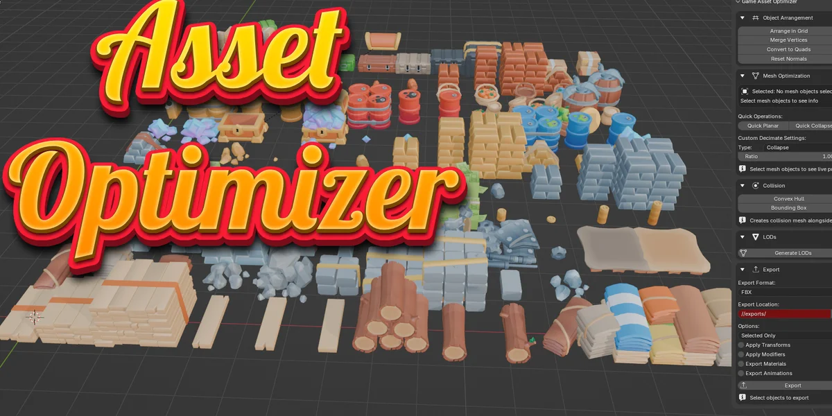 Game Asset Optimizer is an addon designed to prepare Blender models for real-time applications like Unity, Unreal Engine, and Godot. It provides operators for automatically generating UCX and UBX collision meshes directly within the viewport.
