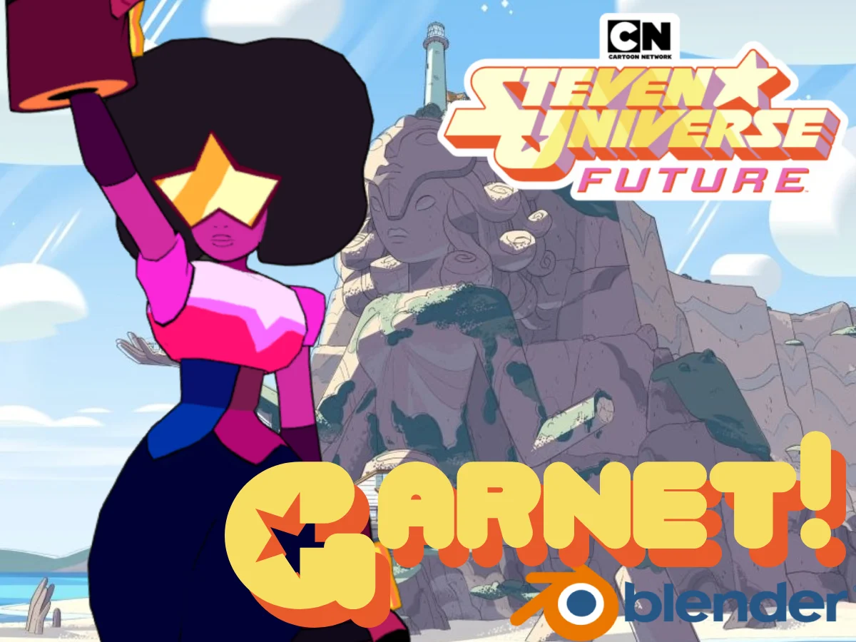 A rigged 3D character model of Garnet from Steven Universe: Future. The model includes her signature gauntlets and a removable visor. It features an integrated armature rig and comes with predefined shape keys optimized for VRChat integration.