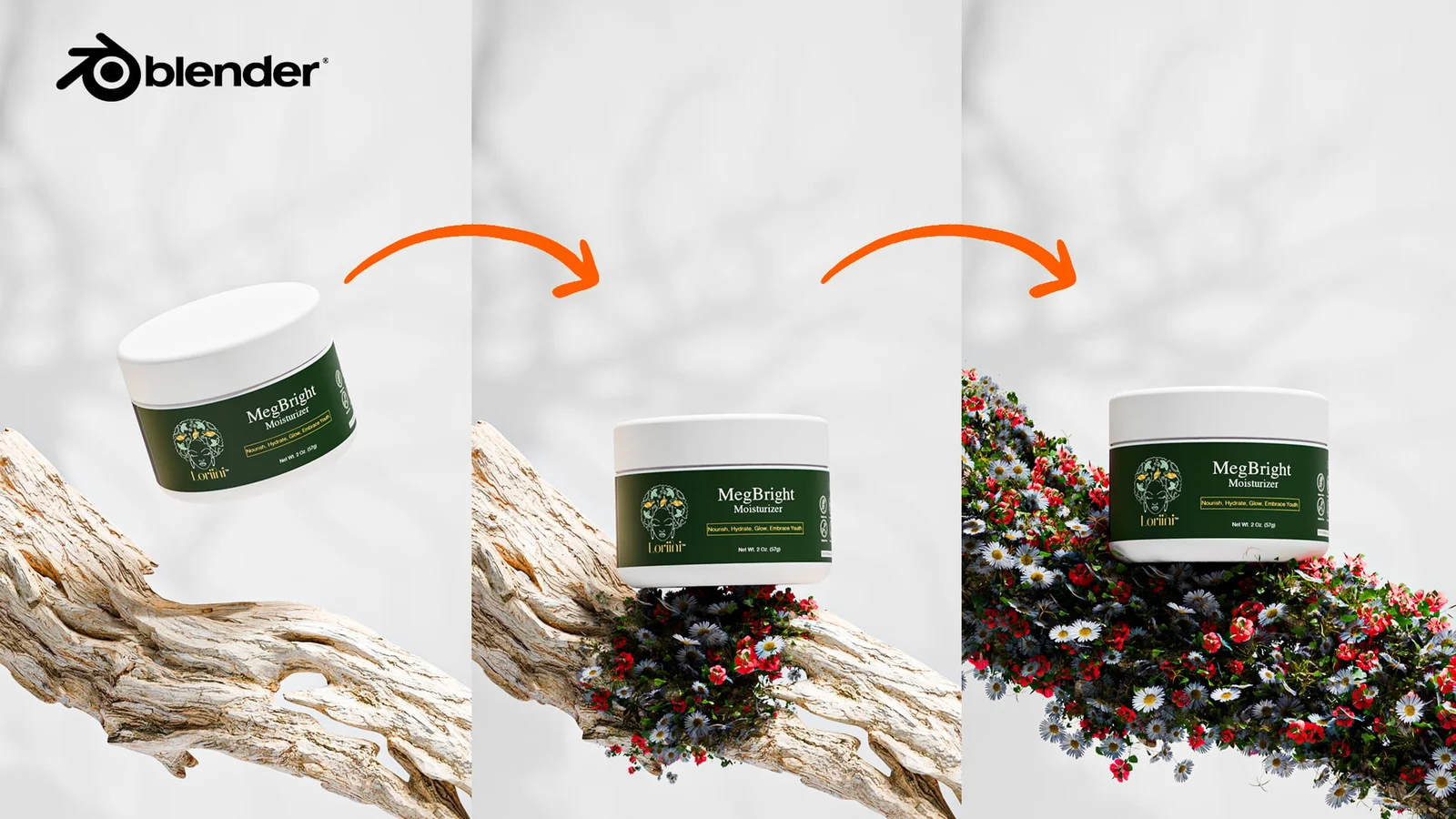 This product provides the Blender source file for a procedural plant growth animation applied to product designs. It includes a fully customizable Geometry Nodes setup that generates dynamic plant growth over a surface. The scene file contains all the necessary assets and optimized animation settings used in the accompanying tutorial, allowing users to adapt the setup for their own product visualization workflows.