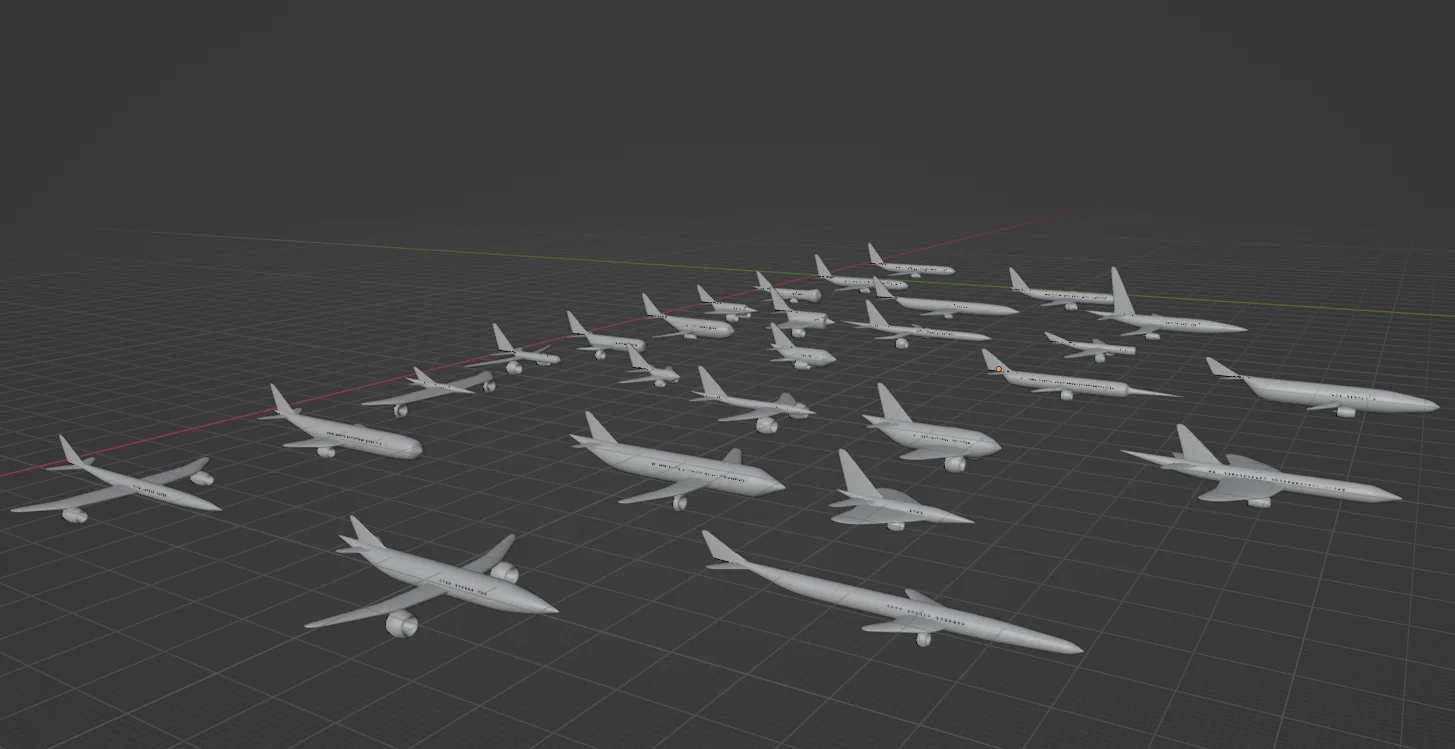 Geo Planes provides two Geometry Nodes setups for procedurally generating aircraft in Blender. The first node graph offers complete access to all construction parameters, allowing for precise control over the resulting airplane model. The second setup exposes a simplified set of inputs and utilizes randomization to automatically generate varied plane designs. The setups can be brought into new projects by appending the node groups or copying the geometry directly.