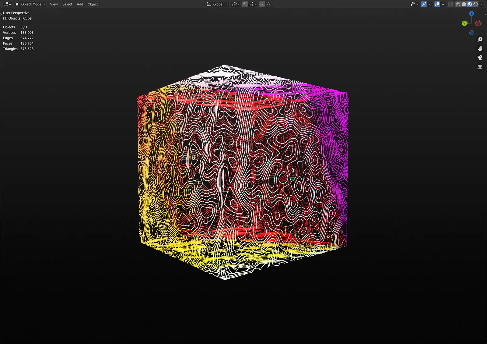 The setup is provided in a blend file containing two examples: a standard cube and the Suzanne monkey mesh, both demonstrating the curved wire conversion effect. It allows you to transform solid shapes into intricate wireframe-like structures.