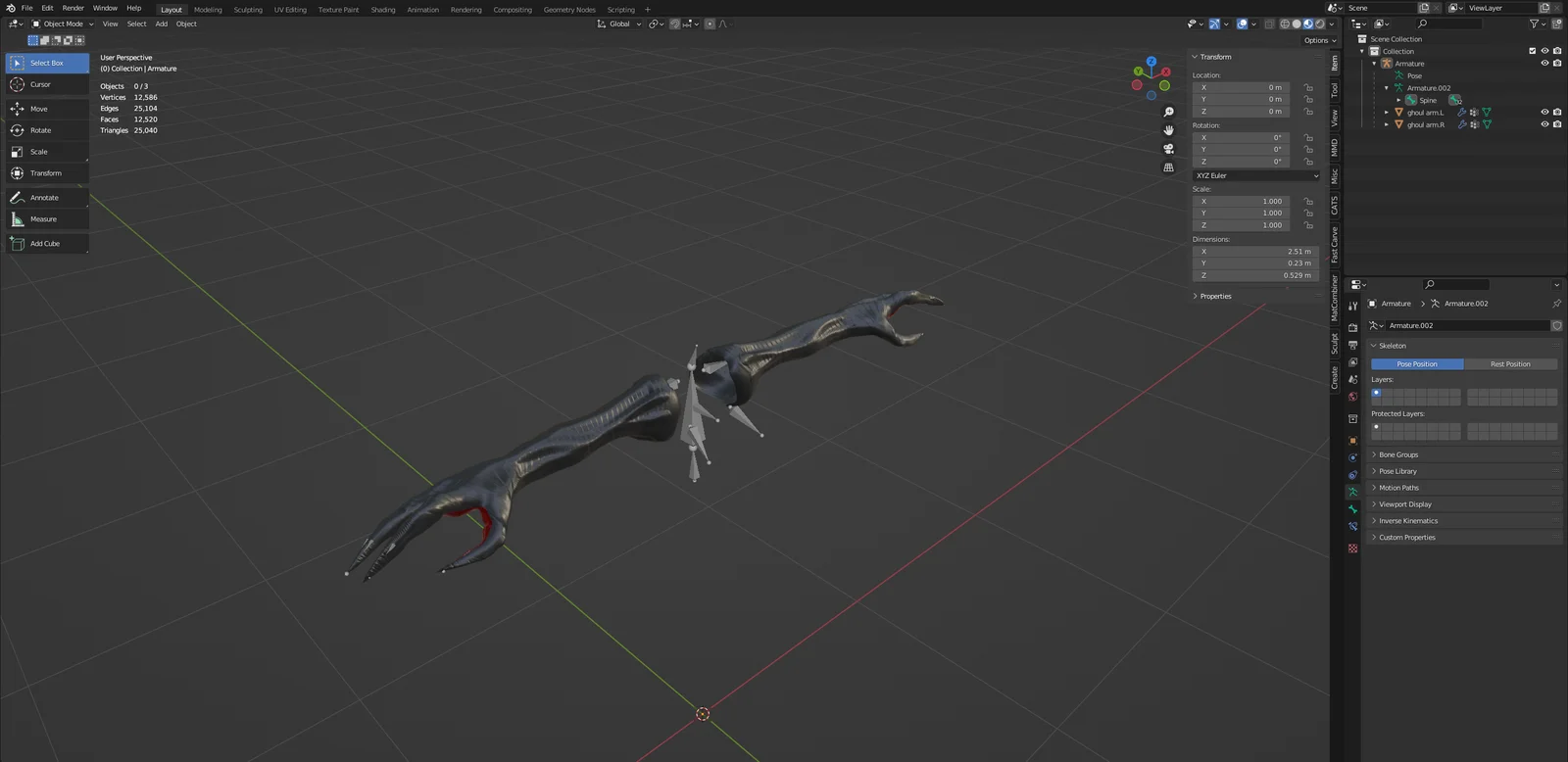 A rigged 3D model of a monstrous arm inspired by Tokyo Ghoul. The model consists of 25,040 triangles and comes fully weight painted. It is designed to be attached to existing character bodies in Blender by merging the shoulder geometry, with blendshapes recommended for achieving a seamless fit. The download includes the FBX file, textures, and a Unity package with pre-configured materials.