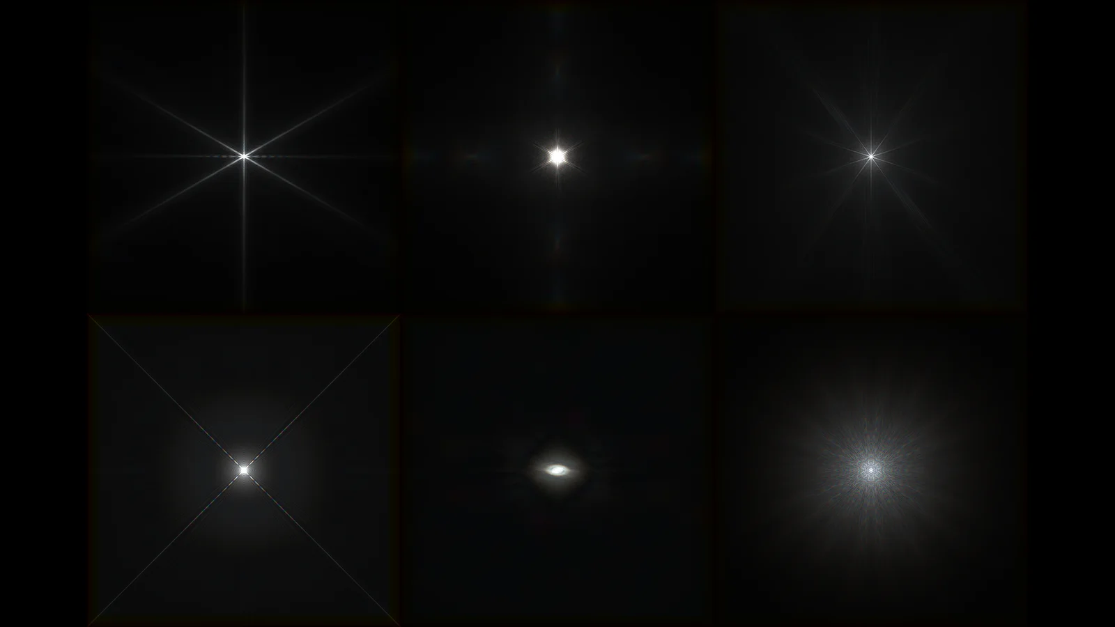This pack contains 20 high-resolution glare elements designed for post-processing and compositing workflows. Each asset is provided as a 2049x2049 EXR file. The elements are specifically built to be used as kernel images for generating glare effects via convolution, allowing for detailed optical effects during the final compositing stage.