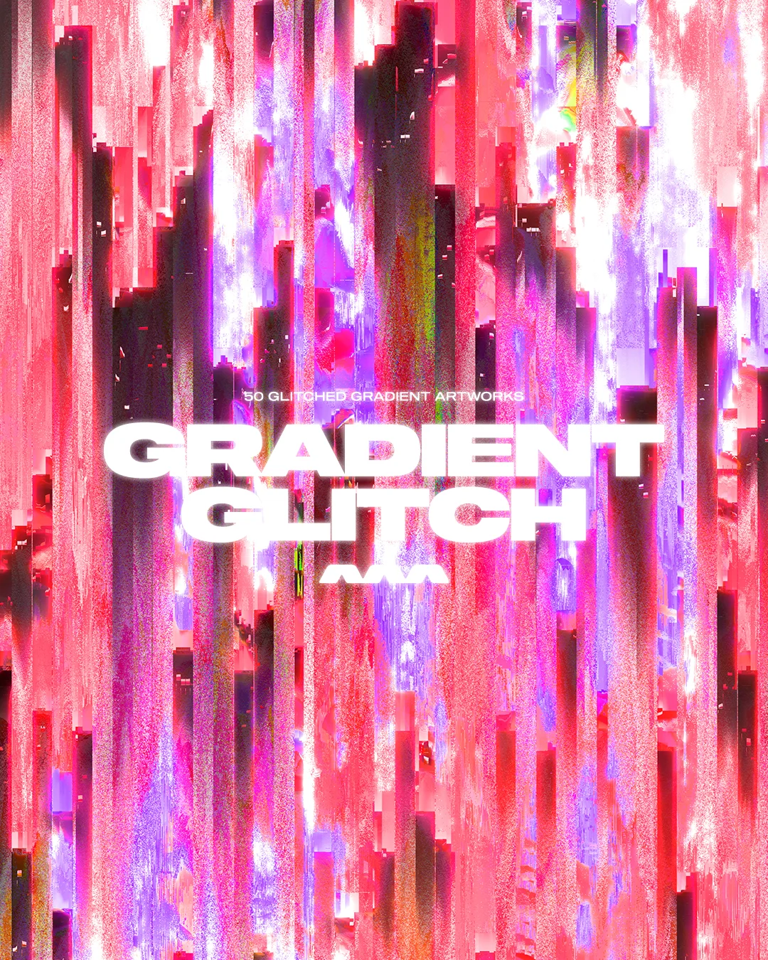 A collection of 50 high-resolution JPEG textures featuring vibrant color palettes and various glitch effects. The images incorporate visual styles such as pixel sorting, screen tearing, and modulation. Each texture is provided at a resolution of 3000 by 3000 pixels at 300 dpi, making them suitable for use as image textures, backgrounds, or decals in 3D scenes.