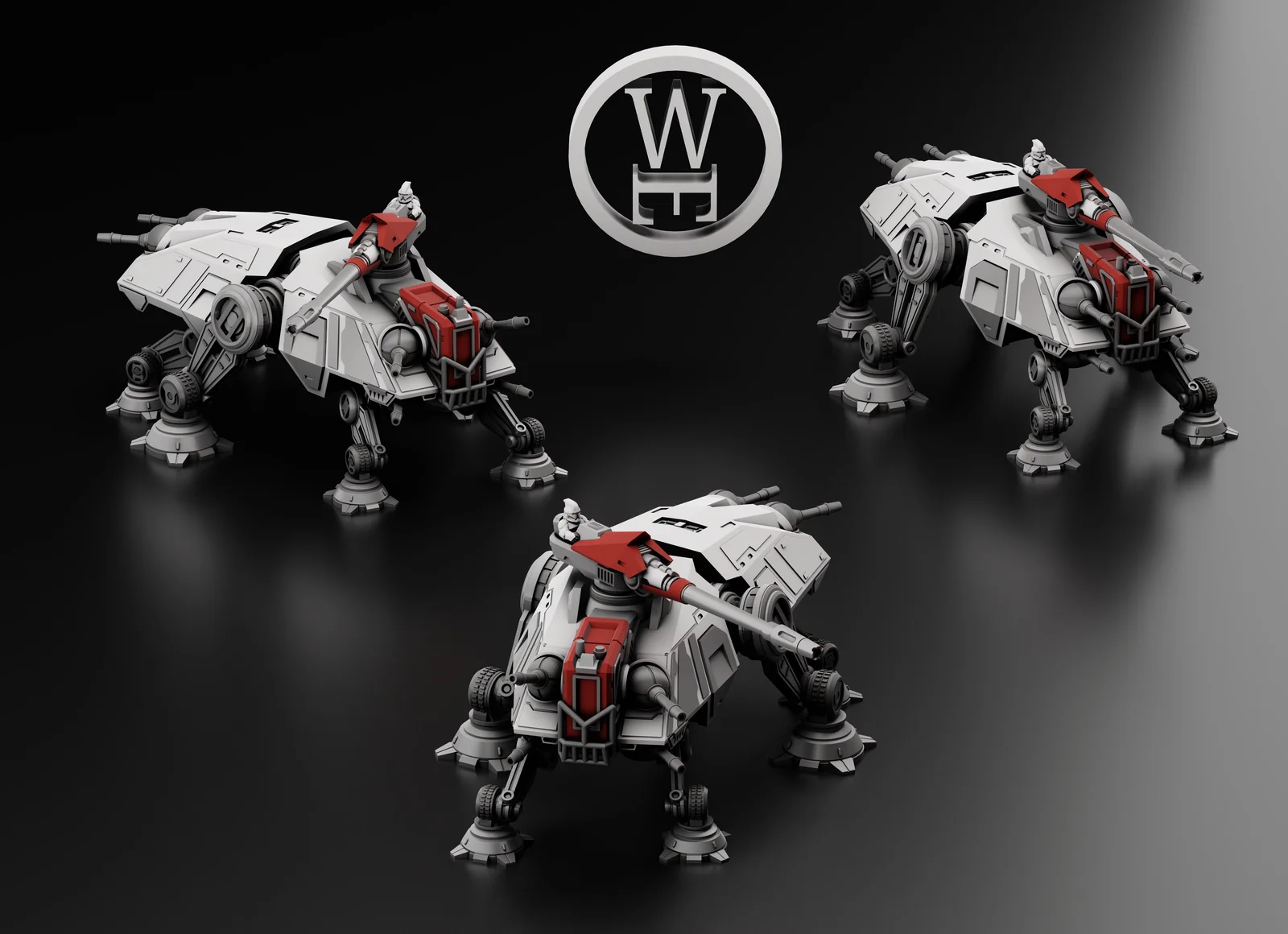 A 3D printable heavy assault walker miniature designed for 6mm tabletop gaming sets such as Legion. The model is optimized for resin 3D printers and can be reasonably scaled from 6mm up to 15mm for different tabletop scales.