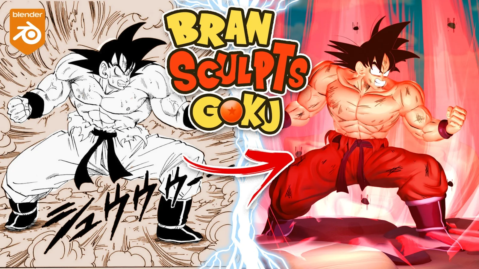 A 3D sculpt of the character Goku from the anime Dragon Ball Z, available as a Blender project file. The model is provided for free and can be used for studying the sculpting process, creating renders, or applying further modifications in Blender's sculpt mode. The file includes a lighting setup for rendering.
