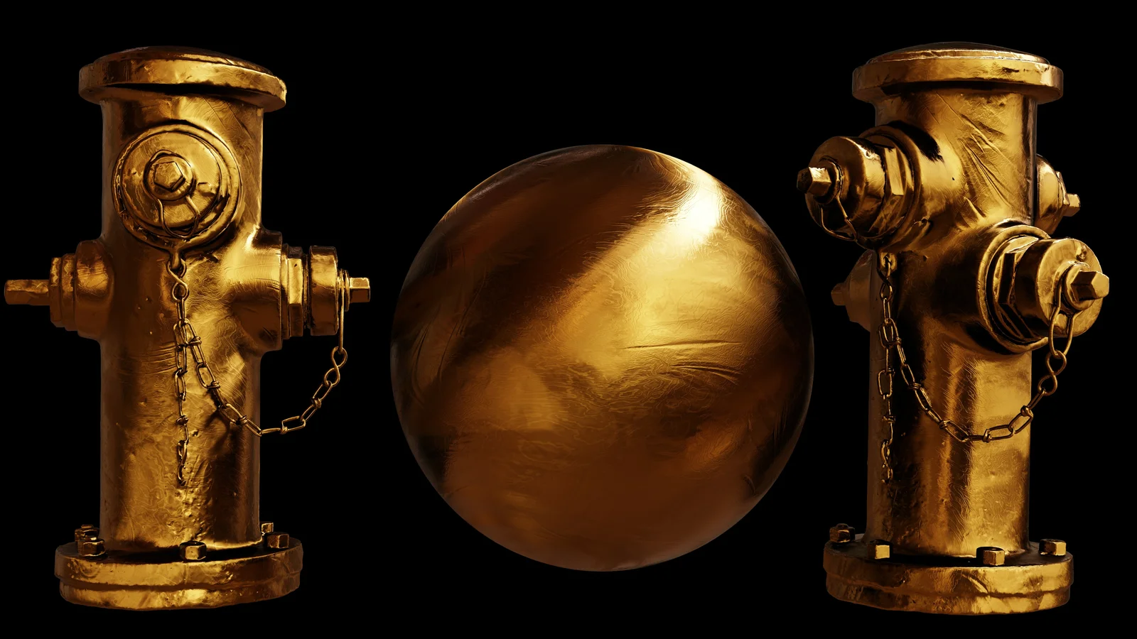 A procedural gold material built for Blender. The shader setup includes integrated procedural surface scratches that can be customized or entirely disabled to achieve different metallic finishes.
