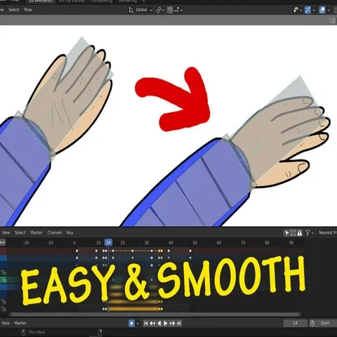 This asset features a pre-configured framework for a turning hand, built entirely using Blender's Grease Pencil toolset. It serves as the official accompanying project file for a video tutorial demonstrating 2D rigging and animation mechanics.