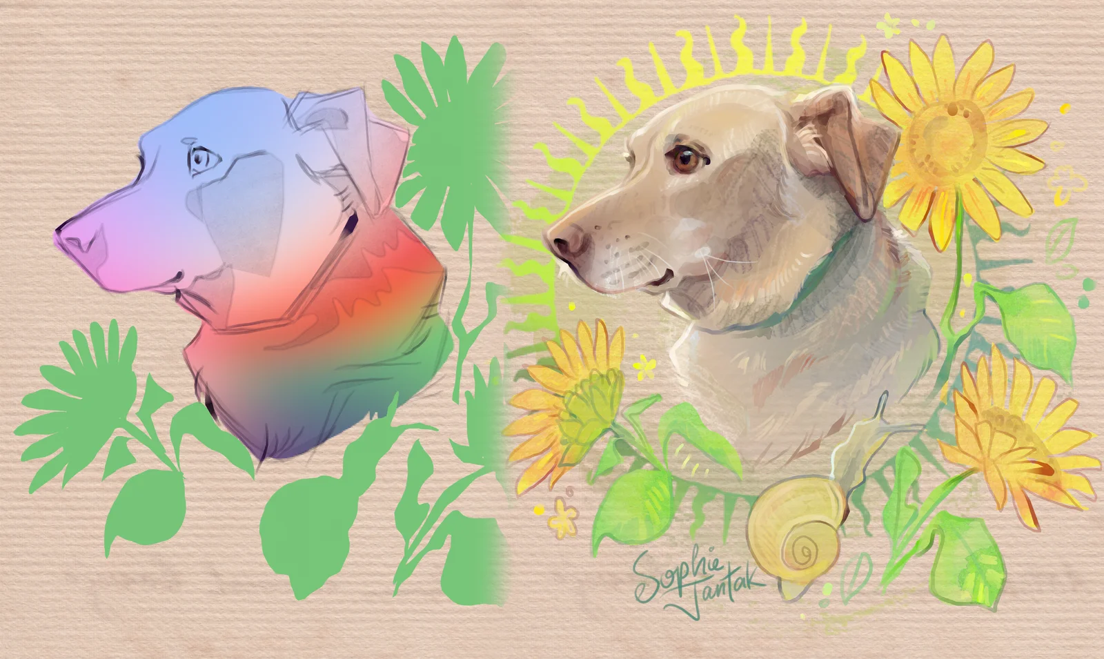 The package includes 4.5 hours of real-time process footage, including an hour of direct narration. It provides three project files at different stages of the workflow, complete with pre-made brushes and textures. The videos cover file setup, sketching, texturing, and rendering phases within the 2D and 3D workspace.