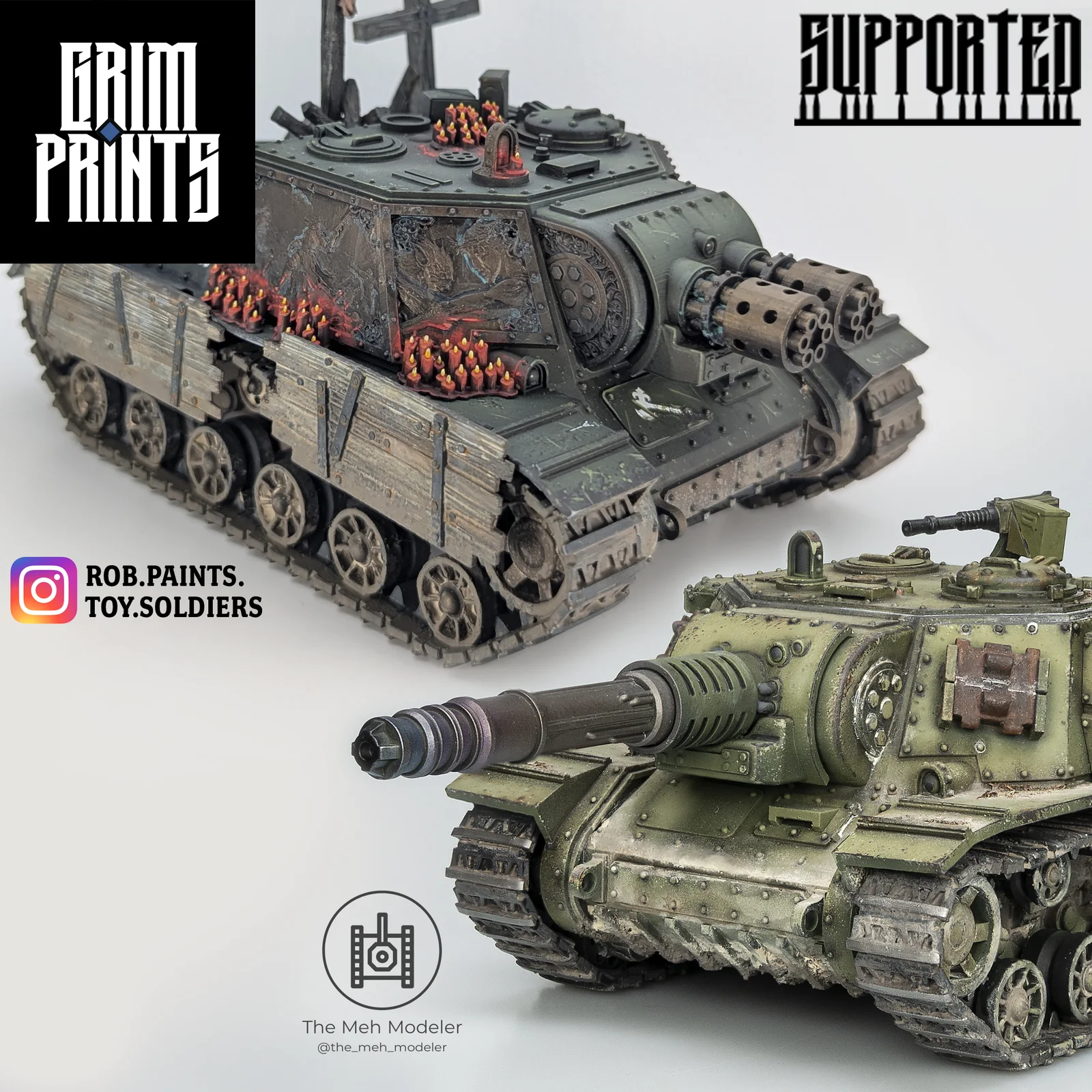 The set also provides extra components like sponsons, generators, pintle weapons, track links, and fuel tanks. Additional decorative elements feature breaking wheels, a crucifix, candle displays, and rustic wooden side skirts. The design incorporates a storage compartment inside the main hull to hold unused weapons, and includes Lychee slicer files.