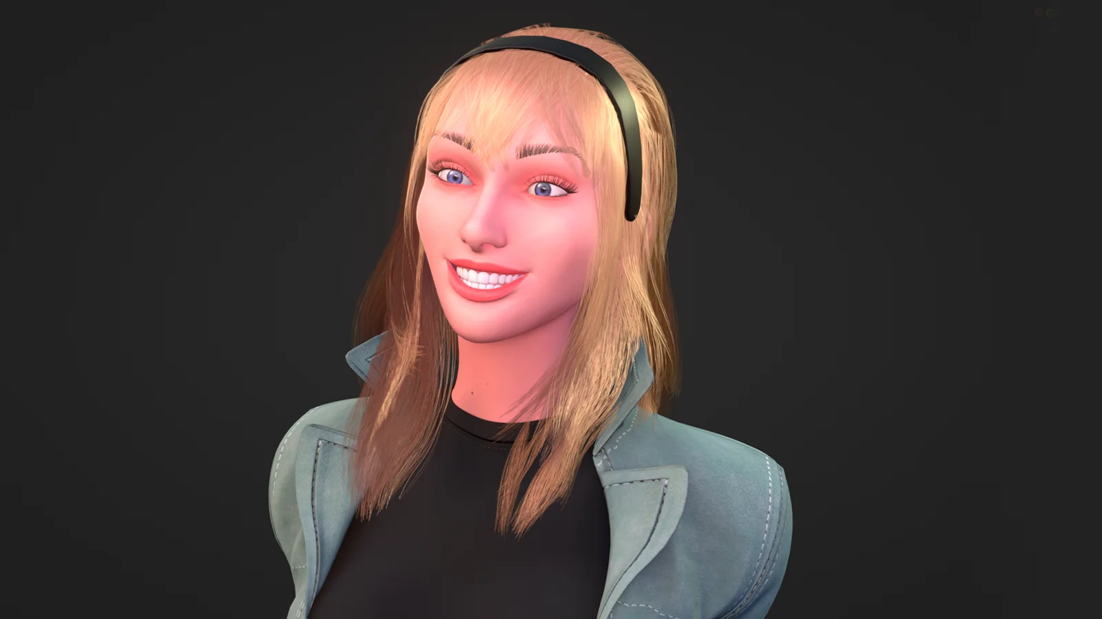 A fully rigged 3D character model of Gwen Stacy. The asset includes standard image textures and is structured for immediate posing or animation. It is provided in both native Blender and FBX file formats.