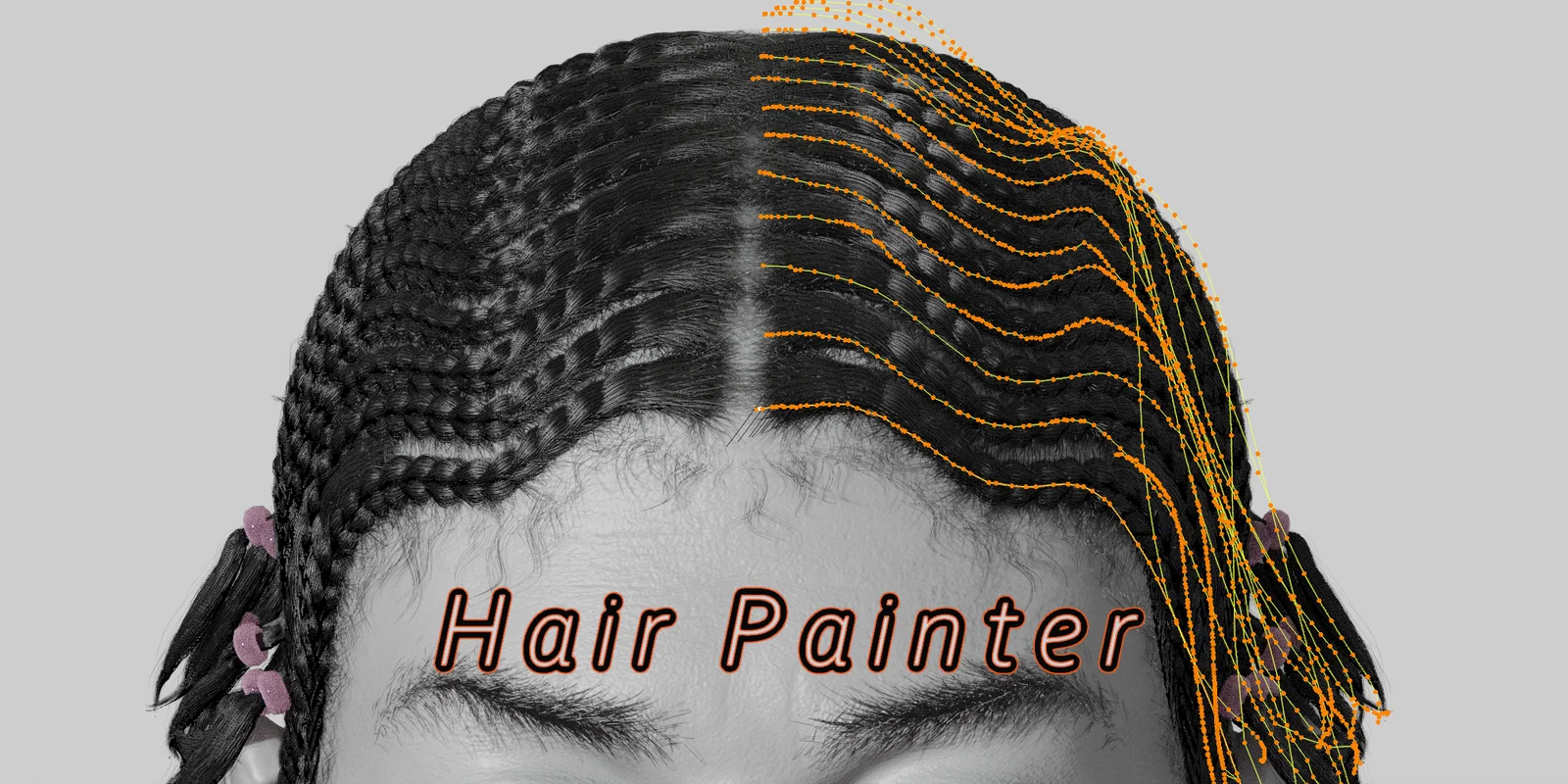 Hair Lab is a procedural hair generation system for Blender that utilizes a curve-based drawing workflow. The toolset includes a Hair Painter system that generates strands, eyebrows, eyelashes, beards, and braids between two drawn Bezier curves. It provides over 25 custom geometry nodes for non-destructive grooming, allowing adjustments to density, curl tightness, wave amplitude, clumping, and child hair generation.