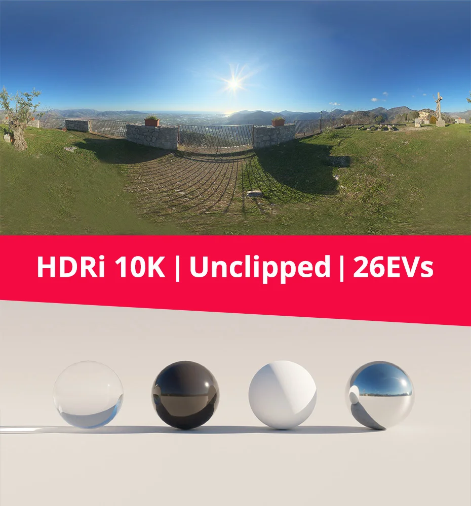 The 32-bit environment maps are provided in multiple resolutions to suit different project needs, including 1K, 3K, 6K, and a maximum resolution of 10K.