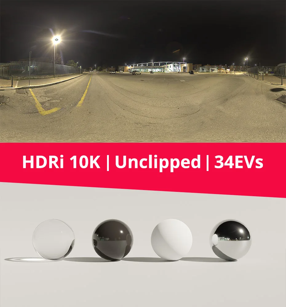 The environment map is supplied in the .hdr format. It includes multiple resolution options for different rendering needs, ranging from a 1K version for quick previews up to a 10,000 by 5,000 pixel 10K version for final renders.