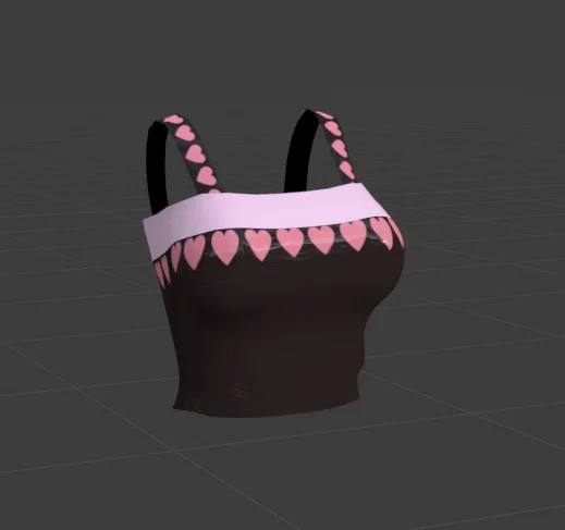 A 3D model of a tank top, provided in FBX format. The mesh consists of 3,000 triangles and is weighted and rigged to Pandaa's base. The package includes two texture variations: one featuring a heart pattern and a plain alternative.