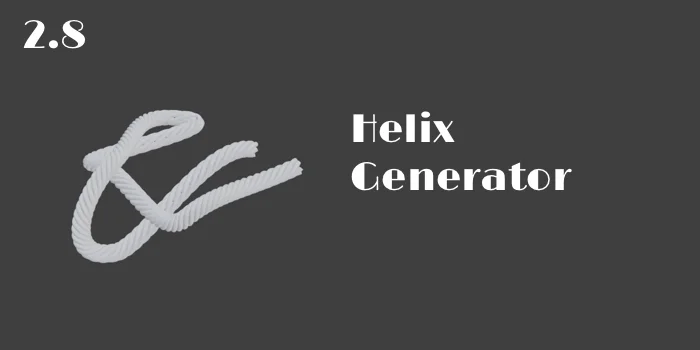Helix Generator is an add-on that creates complex helix structures along curves. It generates helixes around straight lines or bezier curves. The add-on includes options to model ropes and braids. Settings can be saved as presets, and it supports generating closed curves when the original path curve is closed.