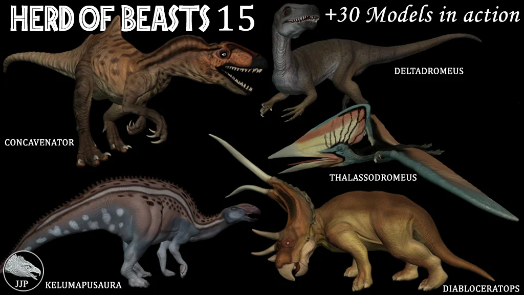A collection of 30 printable dinosaur and antediluvian beast miniatures modeled at a 32mm scale based on current paleontological research. Each model includes a custom base and is provided as a clean STL, a pre-supported STL, and a Chitubox file for easy modification or hollowing. The set features anatomically informed designs of species such as Concavenator, Kelumapusaura, Thalassodromeus, Deltadromeus, and Diabloceratops.