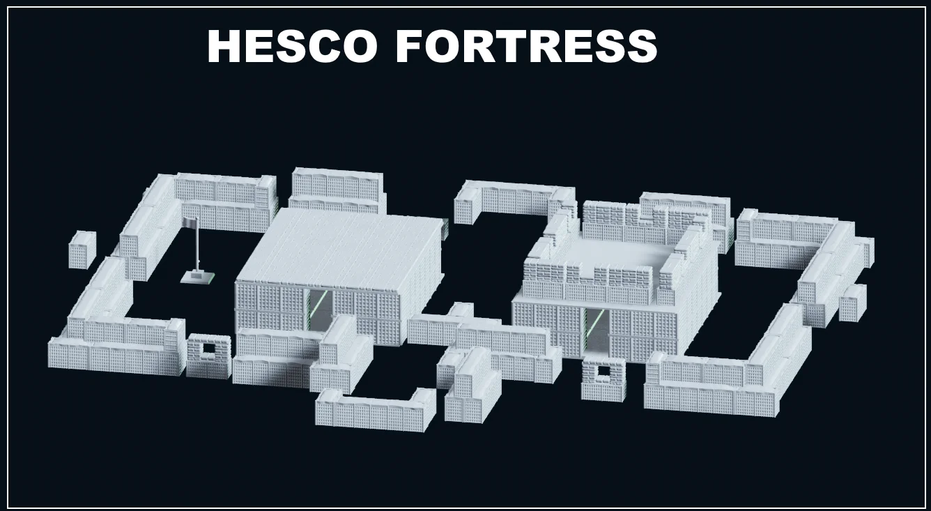 The Hesco Fortress collection provides 42 model files designed for 3D printing, featuring a set of fortress structures and a bonus shack builder kit. The files are scaled to 1/100, which corresponds to 15mm tabletop miniature scale. Included in the set are pre-supported files for convenience during printing.