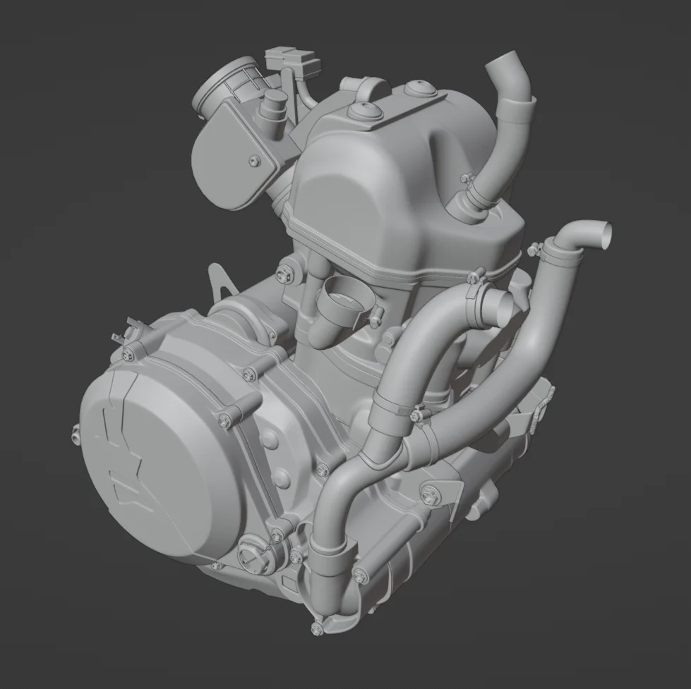 A highly detailed 3D model of the 2021 Honda CRF450R dirt bike engine, created using partial 3D scan data for structural accuracy. Modeled primarily in Blender with some hardware components generated in Fusion 360, this asset is designed to add realism and mechanical detail to existing motorcycle models.