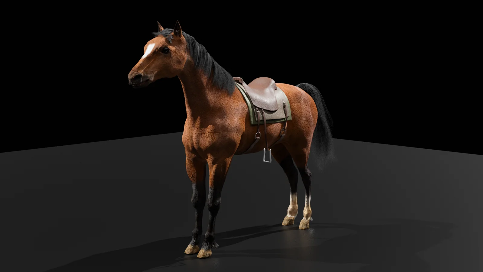 This is a high-poly, realistic horse model textured with 4K resolution textures. The model comes UV unwrapped and is animation-ready.