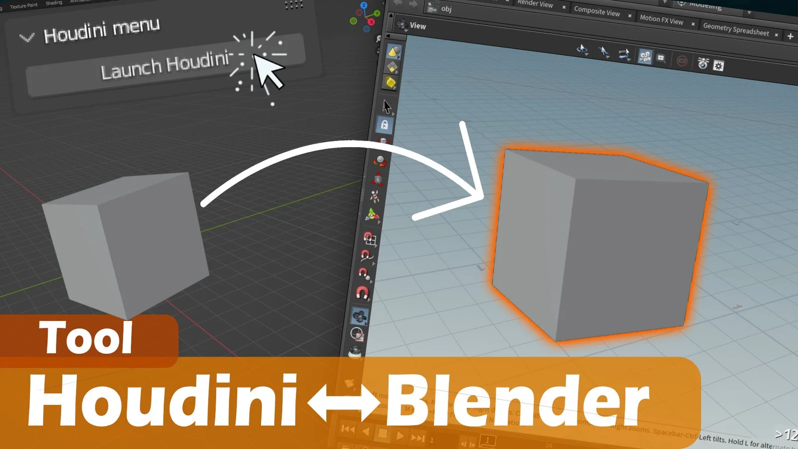 This tool provides Python scripts and custom interfaces to quickly transfer geometry between Houdini and Blender. It adds a simple menu to both applications, automating the process of exporting and importing FBX files without manual file management. The script automatically handles directory creation and uses command-line arguments to pass file locations.