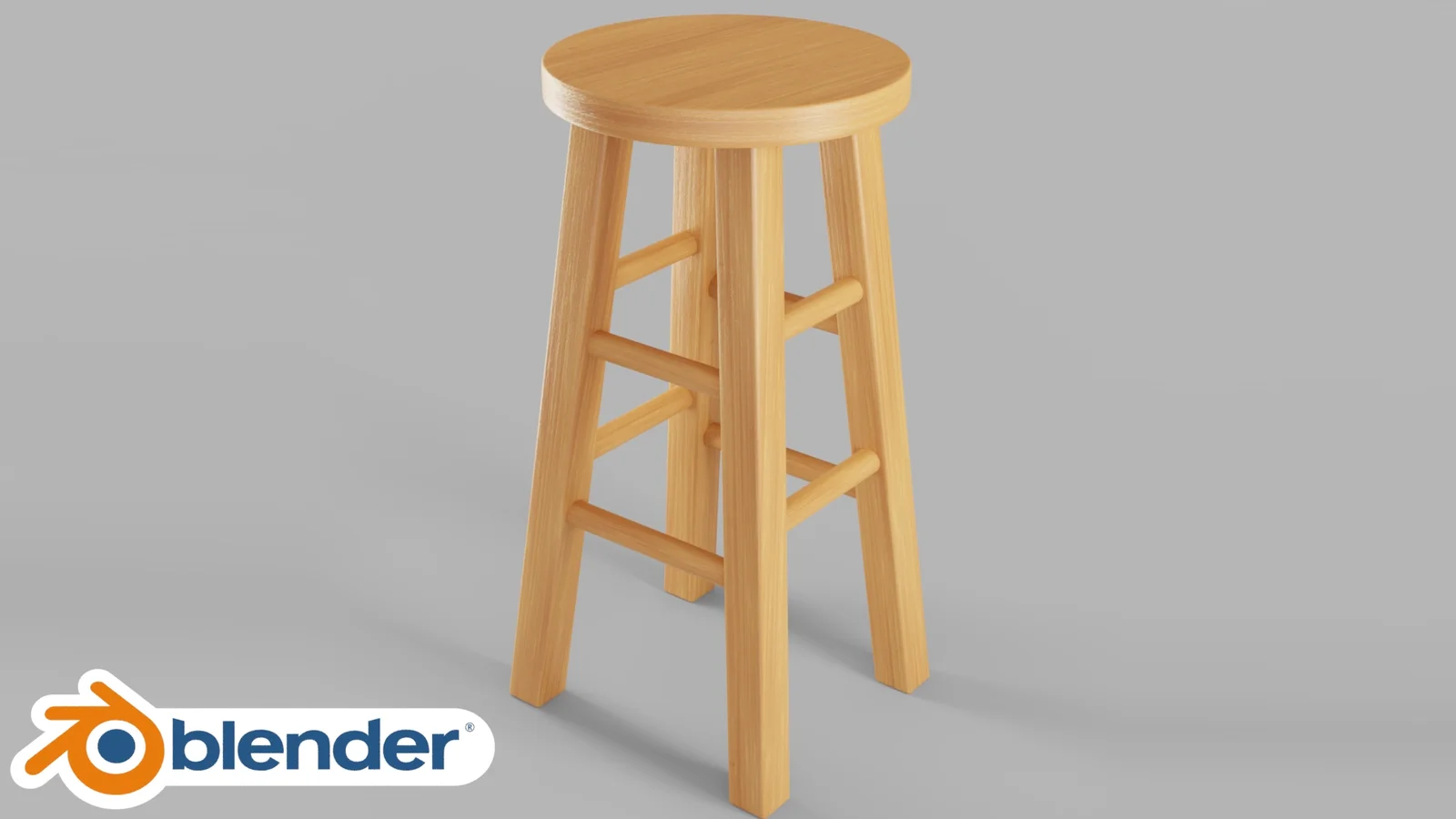 This package contains the completed project files for a wooden stool modeling tutorial in Blender. The included assets consist of the finished Blender scene files, accompanying wood surface textures, an HDRI for lighting, and final reference renders.