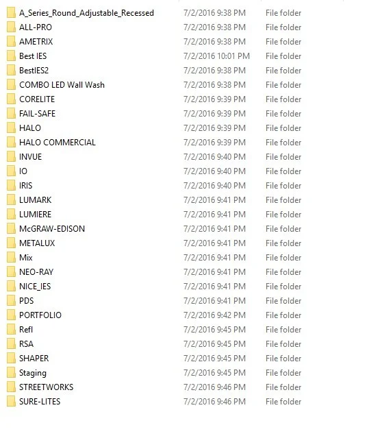 An expansive archive containing over 80,000 IES light profiles, gathered from various online sources. The files are organized into respective named folders and include example images for practical reference.
