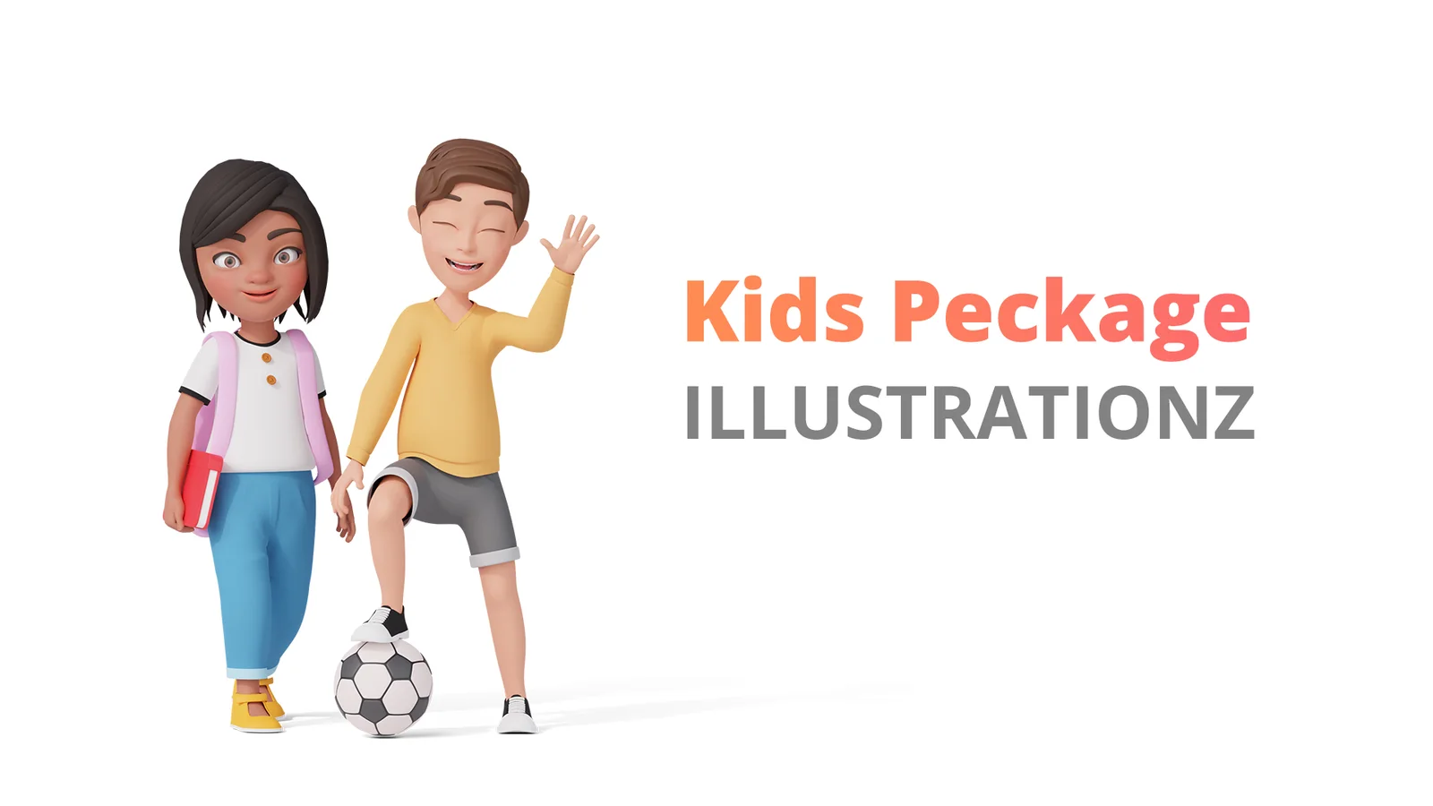 A modular 3D character library featuring boy and girl models designed for illustration and marketing materials. The pack includes source Blender files equipped with a character customization tool to modify the models. Users can mix and match three different skin tones alongside various hairstyles, shirts, pants, shoes, and accessories. The collection provides multiple pre-made poses and facial expressions to combine. Additionally, five thousand pre-rendered PNG files are included for immediate use outside of 3D software.