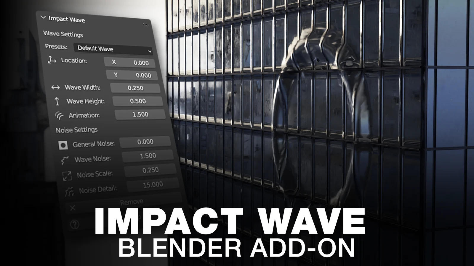 Impact Wave is an add-on for generating customizable shockwaves and energy impacts in Blender. Powered by Geometry Nodes, it provides a procedural workflow for adding visual effects to animations and stylized scenes. The tool includes built-in setup options and comes with seven configuration presets to jumpstart the creation of different wave styles.