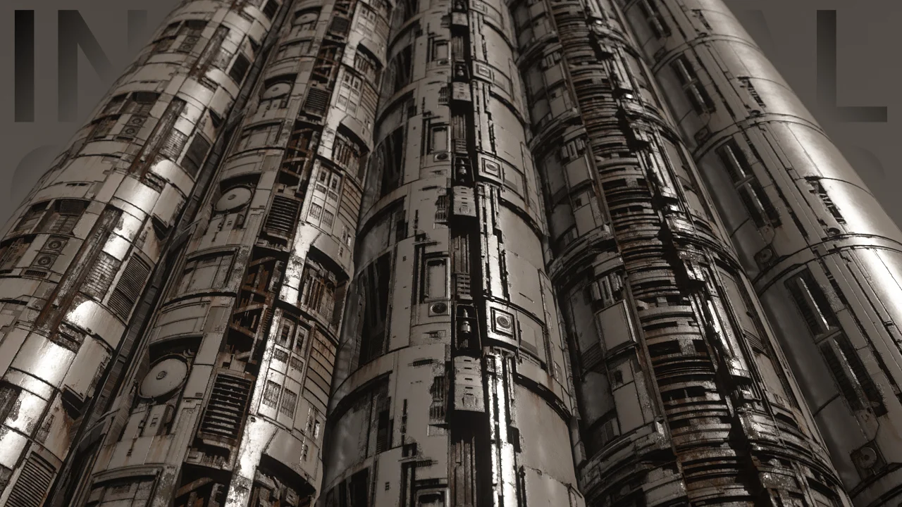 This collection provides five texture sets designed for dark, industrial, and sci-fi environments. Each set includes 8-bit maps for ambient occlusion, color, normal, combined normal, geometry normal, roughness, and specular, alongside 16-bit displacement maps. The textures are provided in standard PNG format for broad compatibility across 3D software and rendering pipelines.