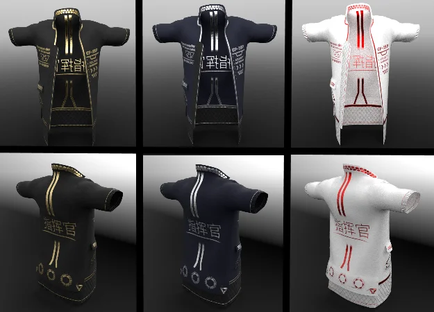 This is a 3D model of a thigh-length coat. It is fully rigged, featuring bones along the bottom edge to allow for sway and movement. The model consists of 4,000 faces and includes a single material with three color variations. It is provided as a Blender file along with the original Substance Painter project file for further texture customization.