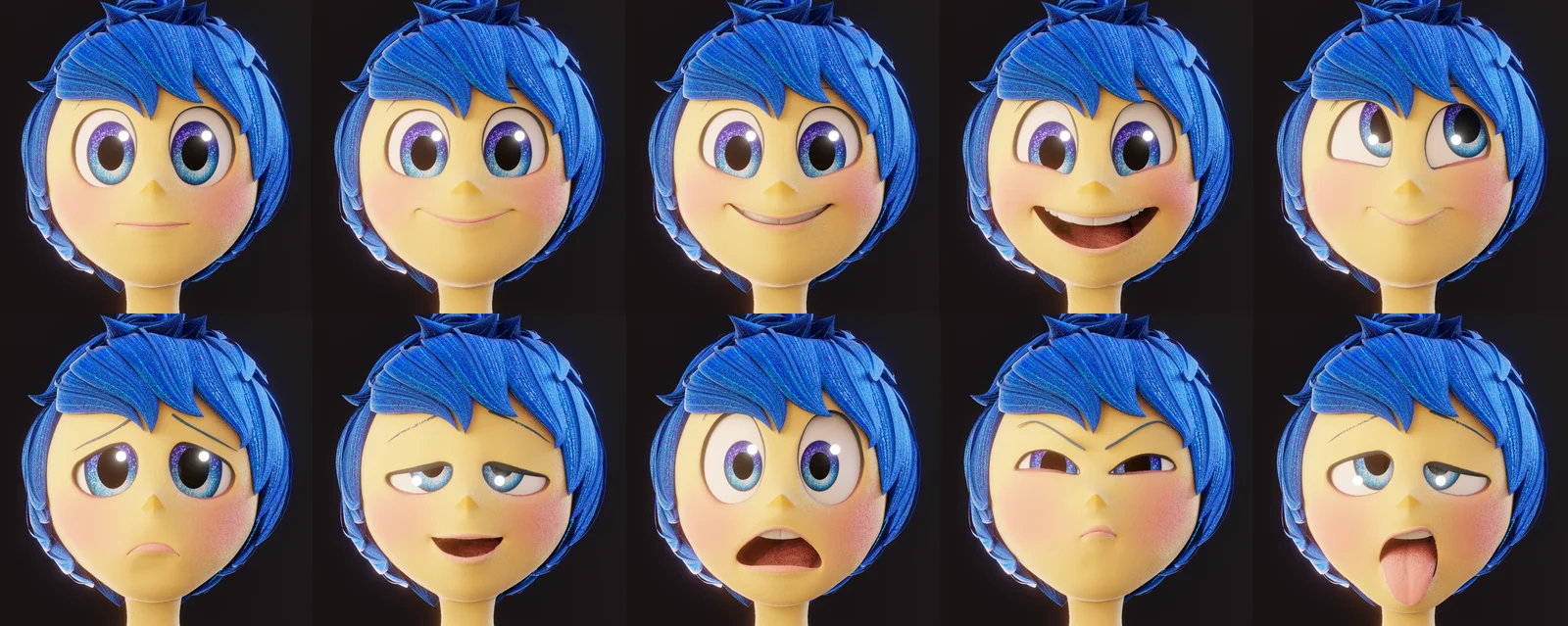A 3D character model of Joy from Inside Out, built for use in Blender. The character is fully rigged using Auto-Rig Pro for the body. The facial rig requires the Faceit Rig Tools addon to function correctly. This is an unofficial fan recreation of the Disney Pixar character.