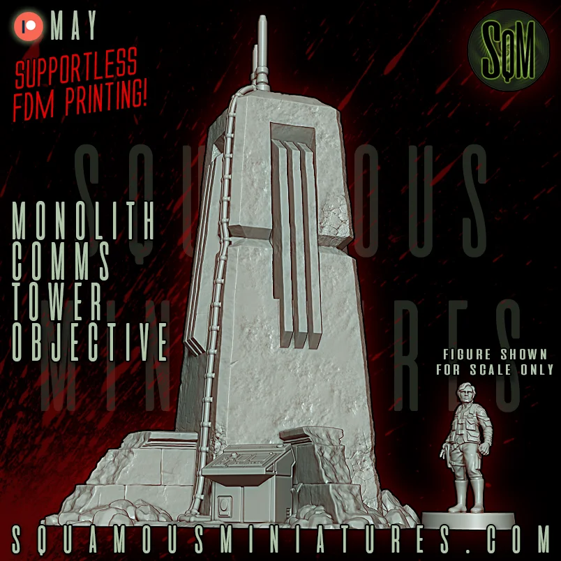 A 3D printable terrain piece designed as an objective marker for tabletop games. Scaled for use with 35mm scale miniatures, this single-part monolith model can be printed without generated supports on standard FDM printers with a minimum bed size of 180x180mm.
