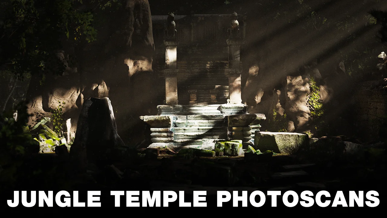 Jungle Temple Photoscans is a collection of 3D models created from photogrammetry scans of real temple structures in Cambodia. Captured using an iPhone and the Polycam app, the assets bring architectural elements from these jungle sites into 3D environments. A free package offers a selection of the scans, while a paid tier provides access to the complete set, including higher detail versions.