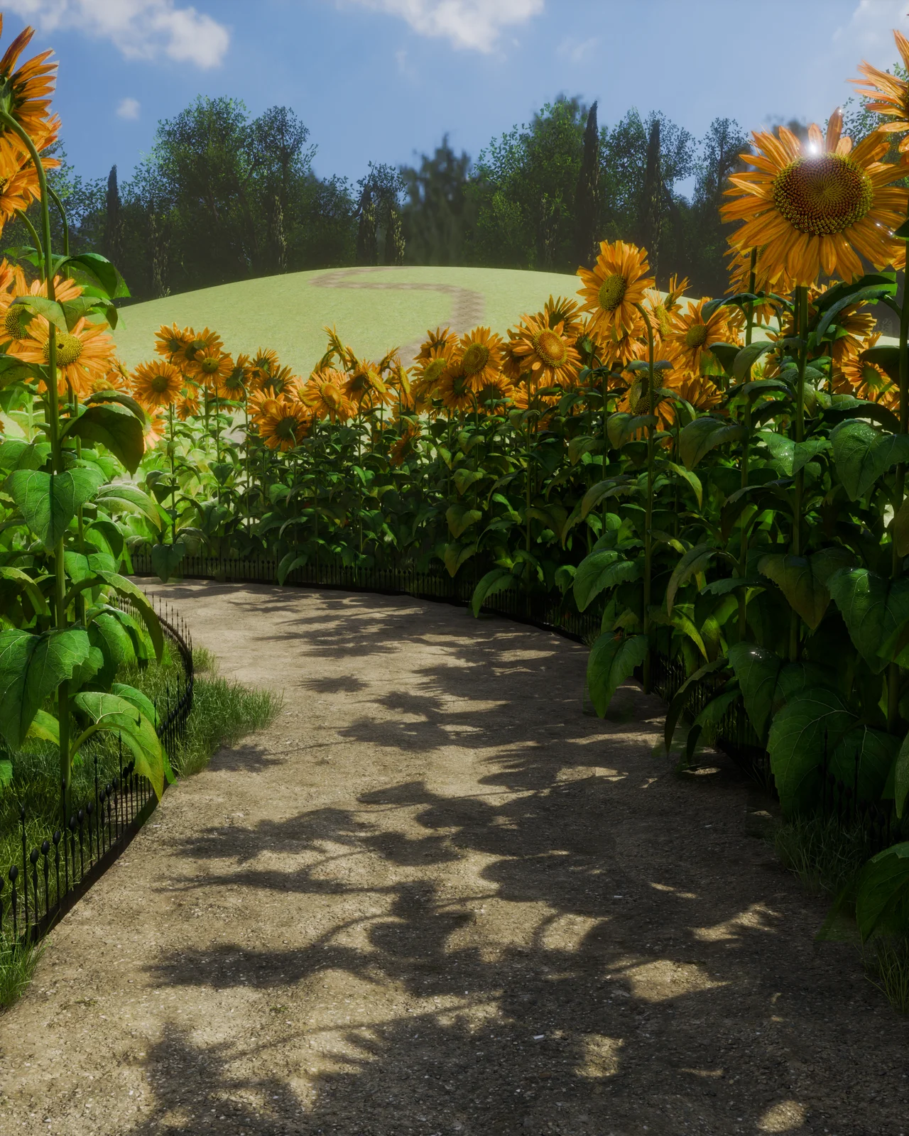 This is a ready-to-use environment scene featuring a sunflower field, designed for Blender. The project file provides a complete outdoor setting and is optimized for rendering with the Cycles engine. Users can customize the environment by adjusting the lighting setup or adding new elements to the composition.
