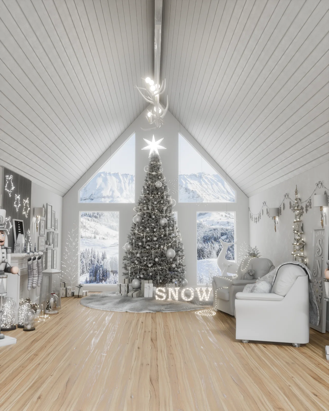 White Christmas is a pre-built 3D environment scene designed for Blender. The provided project file includes the necessary 3D models and textures to render the scene. It is set up to be compatible with both the Eevee and Cycles render engines.