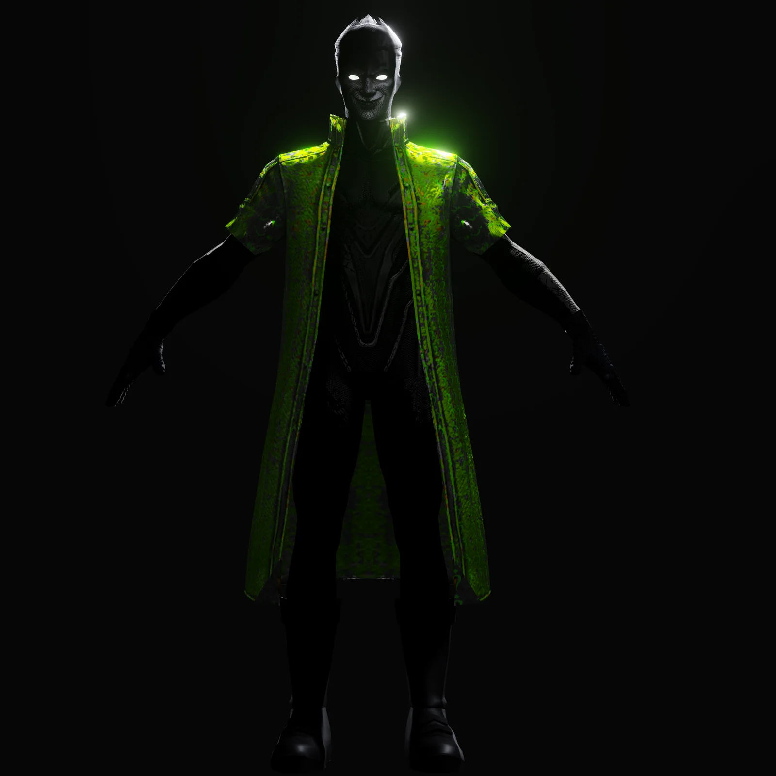 The rig includes additional specific controllers for the character's coat, though cloth simulation is recommended for the best results. Mask controls are also provided to manage the visibility of the arms, legs, and coat while animating.