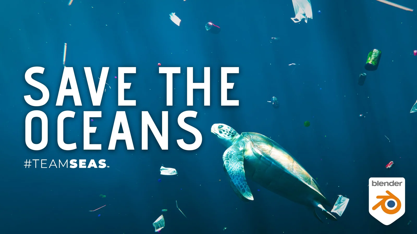 A base file for an ocean animation tutorial covering topics like looping animations, importing models, and setting up an ocean shader. It includes setups for volumetrics, light rays, and particle systems to create floating trash. The file also features a compositing setup for the final look.